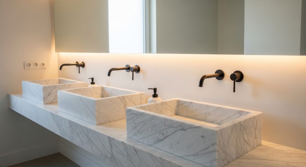 لهذا السبب نرى مغاسل رخام حاضرة بقوة في الفلل، الفنادق، وحتى الشقق الحديثة.
